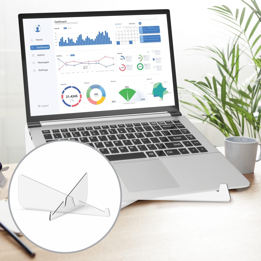 - Versatility: Choose from a variety of stand options, including laptop stands, tablet stands, phone stands and flat-packable designs for ultimate portability. - Clarity: Acrylic offers a sleek, minimalist look that complements any device and enhances your workspace aesthetic. - Durability: Our stands are built to last, offering strong support for your devices without sacrificing clarity. - Stability: Sturdy bases ensure your devices stay securely positioned, preventing accidental falls. - Convenience: Flat-packable designs allow for easy storage and transportation, perfect for travel or flexible workspaces.