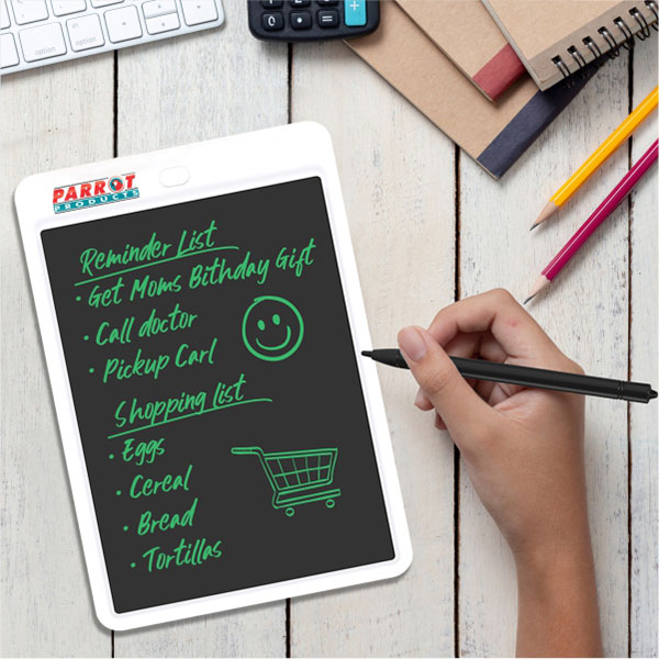 Our LCD writing tablet is lightweight, easy to write on and requires no electricity.